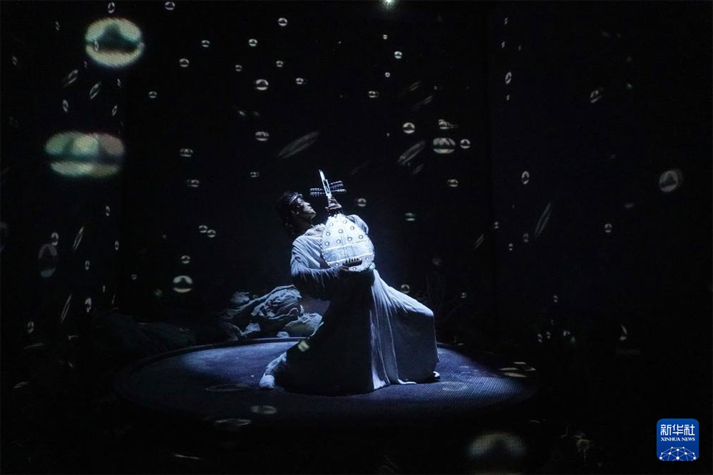 1月21日,在甘肃省敦煌市,演员在大型洞窟式沉浸体验剧《乐动敦煌》中表演。