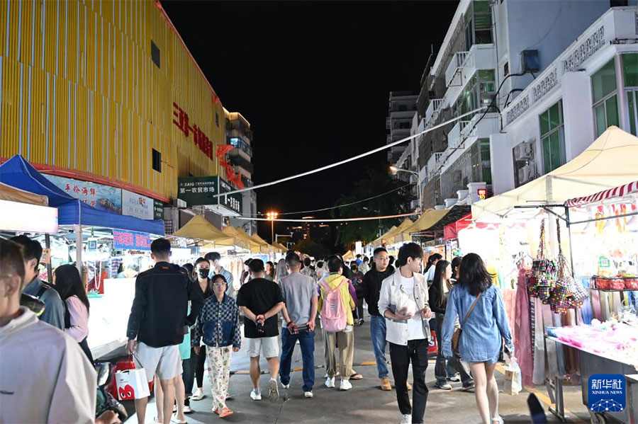 12月20日,市民和游客在三亚市天涯区的第一市场夜市游览购物。