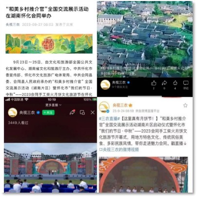 国家公共文化云直播开幕式、现场竞演和“魅力会同•探秘之旅”,建立活动专题页面,热推焦点主题、焦点图;央视三农新媒体同步直播,并刊发新闻、短视频;央视财经频道做重点新闻报道;中国国际电视台CGTN面向全球播发专题报道;央视网文旅美食频道刊发焦点新闻并做重点推广……据统计,“和美乡村推介官”官微、官博、短视频矩阵长达30天持续宣传推广,相关阅读量超过500万,并且还在持续增长。