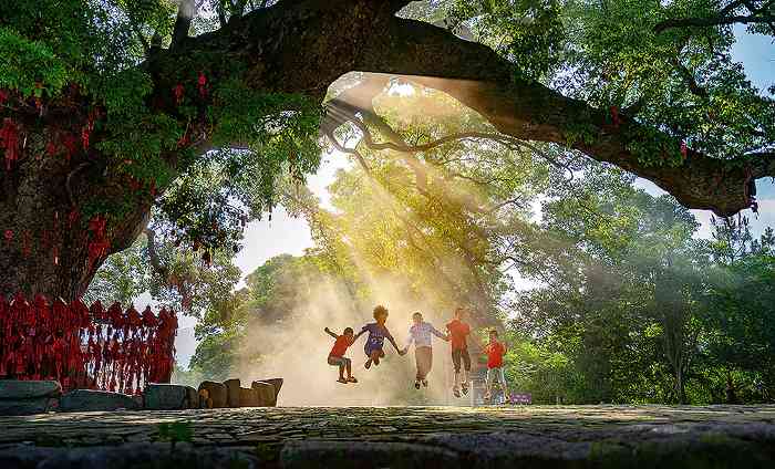 青砖黛瓦错落成诗,每一砖、每一瓦,承载着岁月的低吟与百姓的期许;千年古樟矗立村口,静守千载轮回,草木生灵,恣意生长,翠叶滴翠,鸟鸣婉转,演绎着生机盎然的田园交响曲;牛头山乡村森林公园,林海涛声、鸟语花香,铺展成天地间的一方秘境;圣水堂国家森林公园,峰回路转,谷深林密,葱郁树木织就绿色天幕。