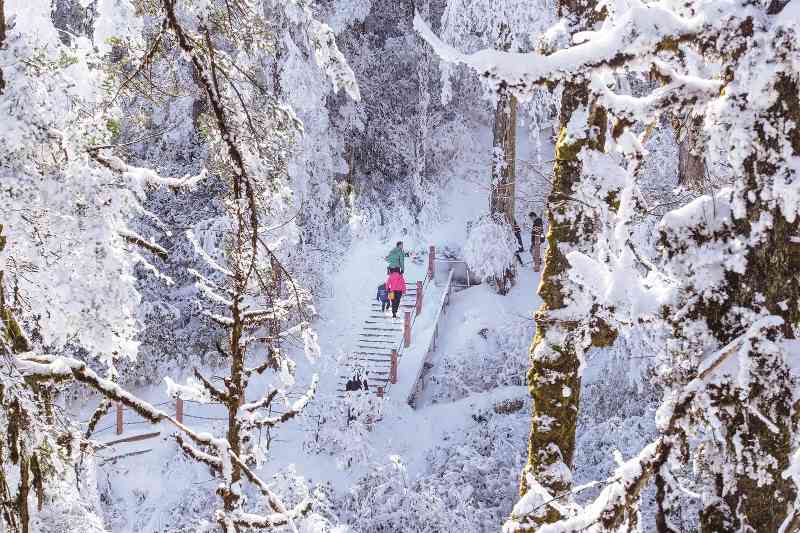 日前,峨眉山迎来了今冬的第一场雪,奇峰、怪石、古松、云海,勾勒出一幅美不胜收的画卷。而雅安牛背山最佳观景季为每年12月至次年2月,云海中白雪皑皑,蔚为壮观。