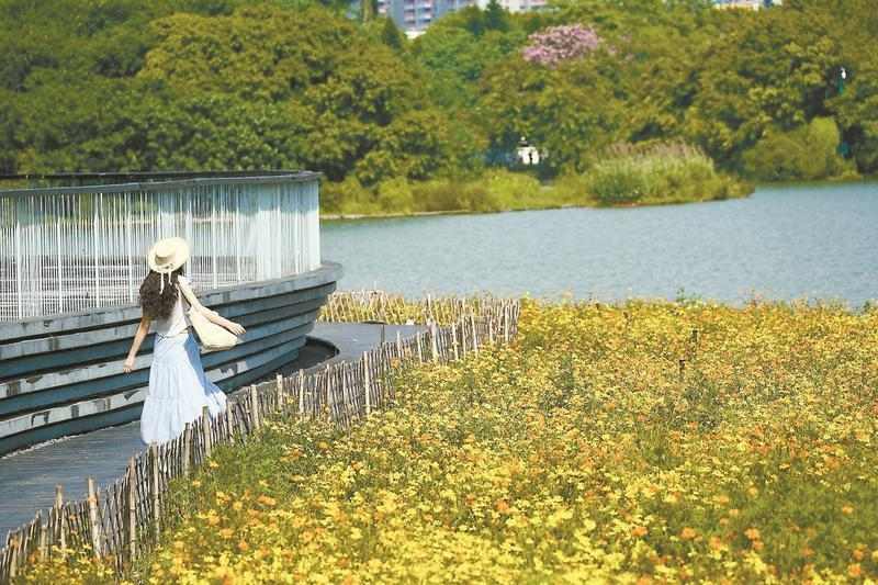 广州海珠湖吸引不少市民游客打卡 记者 陈秋明 摄