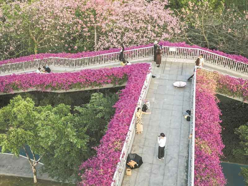 广州的簕杜鹃开满人行天桥 记者 贺全胜 摄