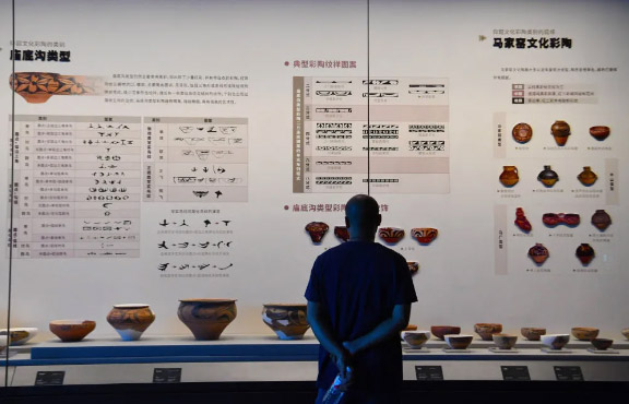 2024年9月24日,参观者在位于河南省三门峡市渑池县仰韶村国家考古遗址公园内的仰韶文化博物馆观看展品。新华社记者 郝源 摄