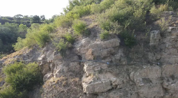 为防止碎石脱落将古栈道掩埋或毁坏,近几年国家出资对此处栈道上的危岩体进行加固。目前工程已竣工,古栈道上方有专业防护网,新修的排水沟阻断了上方雨水对古栈道的冲刷。