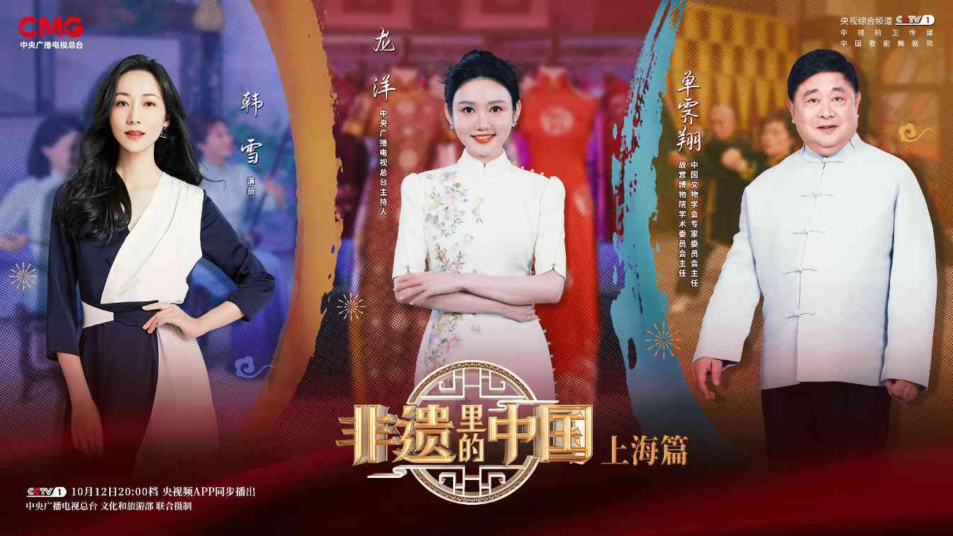 由中央广播电视总台与文化和旅游部联合摄制的大型文化节目《非遗里的中国》上海篇于10月12日20:00档在央视综合频道(CCTV-1)播出,央视频全网独家首播。