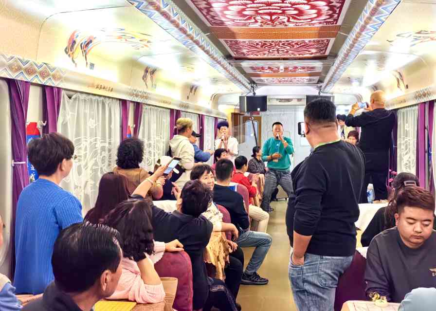 为了给中老年游客提供舒适愉悦的乘车环境,此趟重阳节旅游专列配备了KTV、品茶室、棋牌室、智能电子锁、影音系统、恒温淋浴系统以及冰箱、乳胶床垫、贡缎工艺床单被套等设施设备,人们在旅途中既可观景休息,也可游览娱乐。同时,积极做好旅游服务承接,安排专人接送站,提供绿色通道、大件行李搬运、全程旅行管家等特色服务,高质量满足游客与家人朋友相伴出游,共赏秋日芳华、欢度重阳佳节的美好愿望。