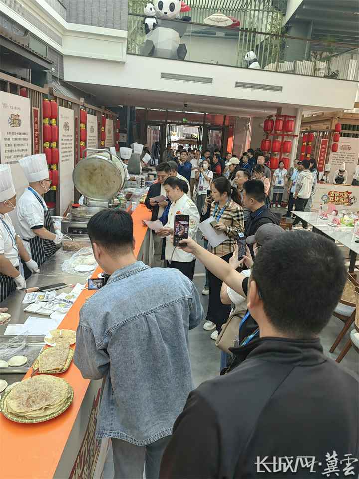 比赛现场,厨师们身着整洁的厨师服,和面、调馅、擀皮、上馅、包捏成型、加热至成熟,每一道工序都专业而富有激情。热气腾腾的肉饼香味四溢,色泽黄褐透亮,外皮油酥焦脆,让在场观众垂涎欲滴。